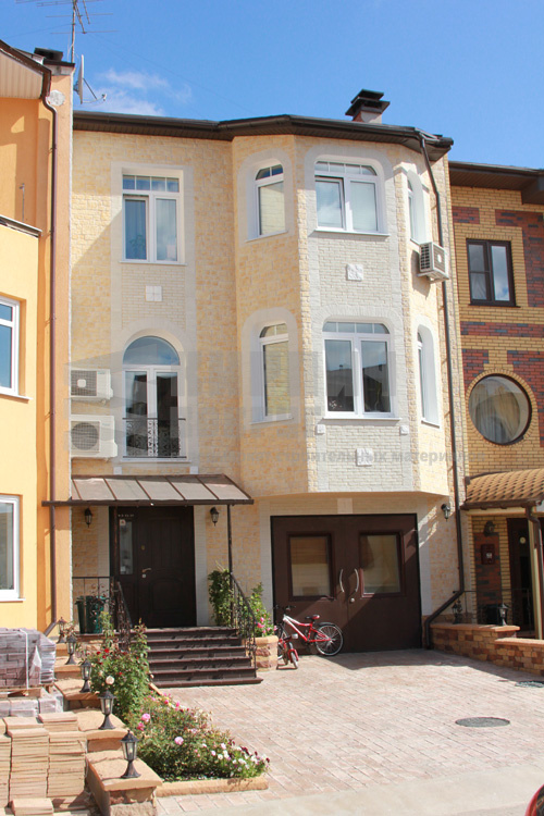 Этот материал идеально подойдет для всего фасада, его можно выбрать и для отделки некоторых элементов дома: балкона, окон. Им можно выгодно подчеркнуть самые удачные части или, наоборот, скрыть что-то. Данный цвет можно назвать идеальным, т.к. он подходит дому любой архитектурной конструкции, с любыми геометрическими формами.